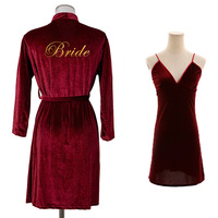 ルースベルベットウェディングローブ刺繍花嫁花嫁花嫁ナイトガウンドレスセクシーバスローブラウンジホームウェアパジャマ女性パジャマ
