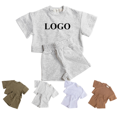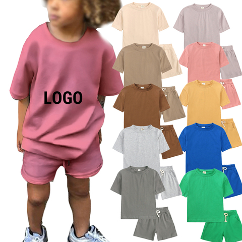 夏物子供服ワッフルコットン幼児男の子服半袖特大tシャツとショートパンツ無地幼児女の子服