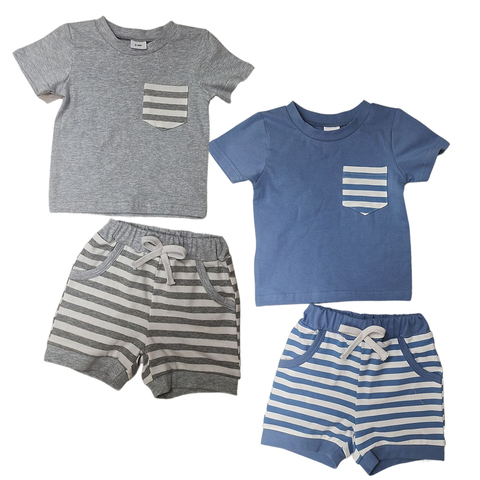 夏のベビー服男の子0-12ヶ月半袖特大tシャツとショートパンツベビーボーイ衣装ストリップビンテージベビーボーイ服